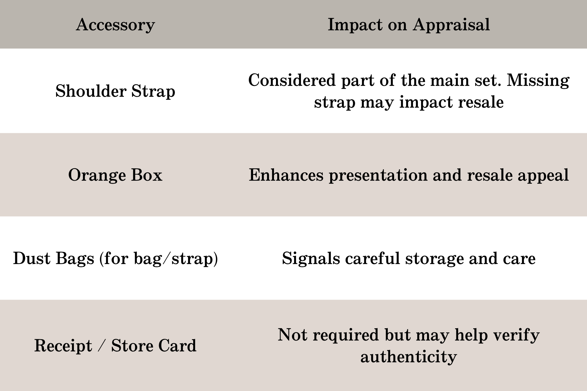 Age also matters. Older accessories may lose value unless they are rare or vintage.
