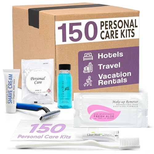 - Includes 150 essential pieces such as toothbrush & paste, mouthwash, makeup wipes, swabs, nail file, and sewing kit.
