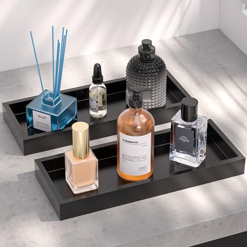 The ZHWS Black Bathroom Vanity Tray is perfect for individuals looking to enhance their bathroom or kitchen organization with a sleek, stylish touch. Ideal for those who appreciate minimalist design and want to neatly display or store items like perfume, jewelry, toiletries, or even kitchen essentials such as spices and coffee sets. If you need a versatile, durable tray that fits comfortably on countertops or toilet tanks, this set of two trays is an excellent choice.