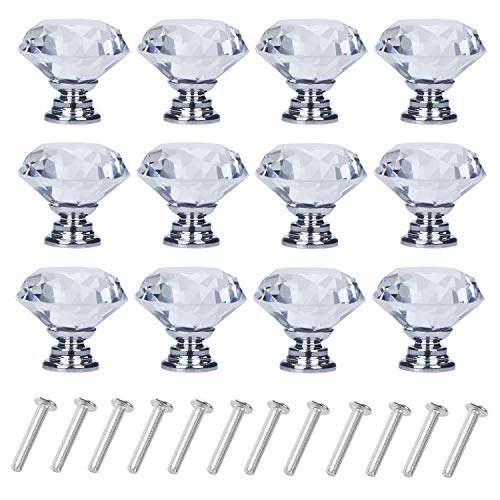 The YourGift 6 Pack Drawer Knobs feature a beautifully crafted diamond shaped crystal glass that instantly elevates the look of your cabinets or drawers. With a precise 30mm dimension, these knobs offer a comfortable grip while maintaining a sleek profile, making them a practical choice for everyday use. The silver color adds a timeless touch that blends well with a variety of color schemes and furniture styles.