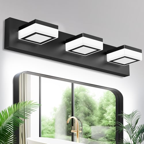 SineRise LED Modern Bathroom Vanity Light Fixtures (3-Light, 24-Inch, Dimmable), Matte Black Modern Acrylic Bathroom Wall Lighting Fixtures Over Mirror (Cool White 6000K)