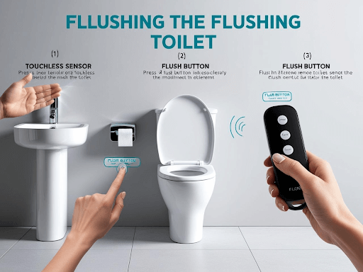 These toilets work without touching any buttons. They use technology to make flushing easy and hygienic.