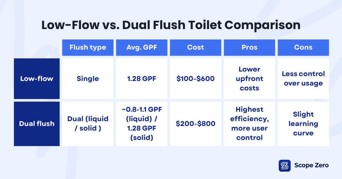 Look for dual-flush options. They let you choose a light or full flush, saving more water.