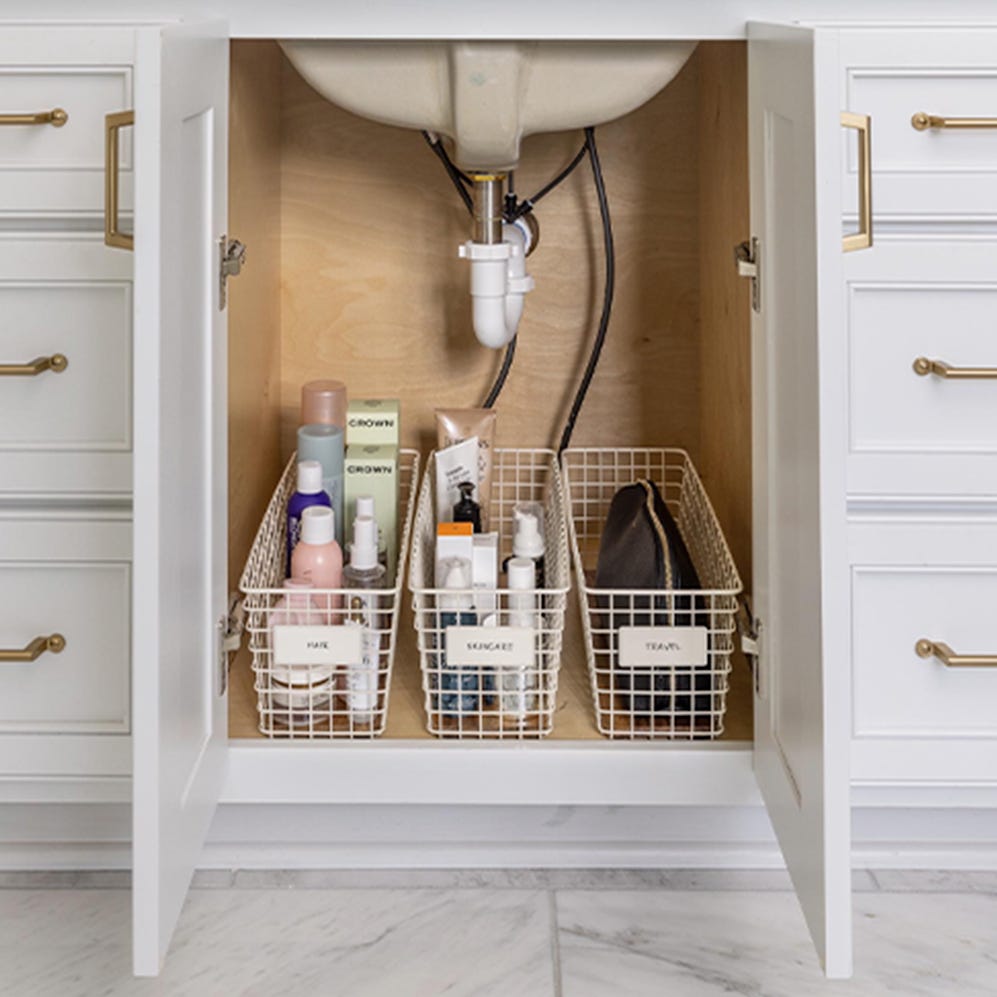 The space under the sink is often wasted. Adding storage here helps keep bathroom essentials organized.